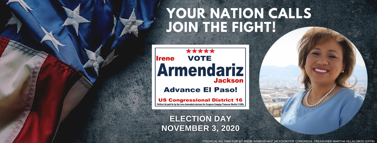 Political Ad. Paid for by Irene Armendariz-Jackson For Congress. Treasurer Martha Villalobos Giffin.